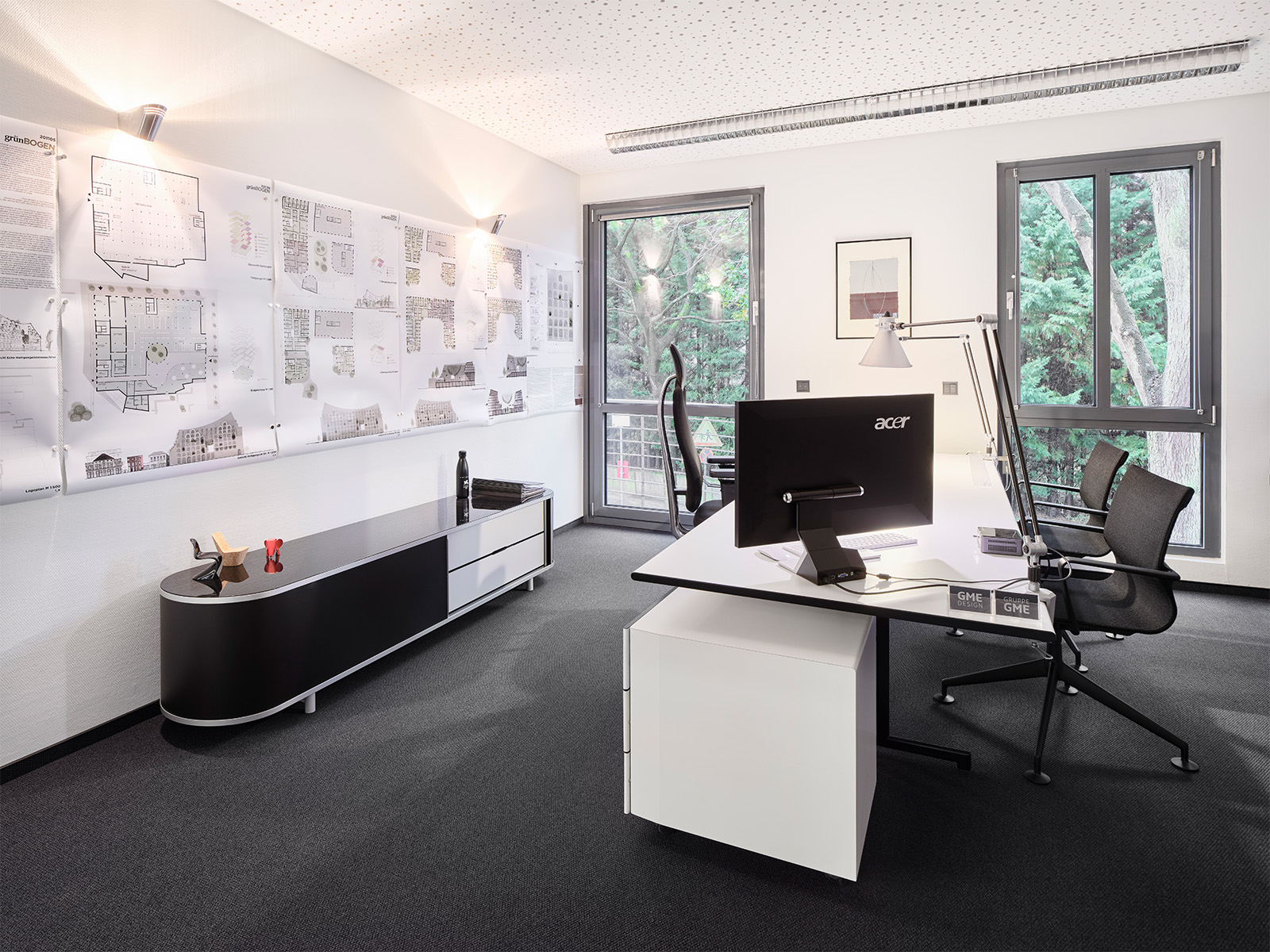 Mit der von uns gestalteteten und umgesetzten Renovierung des Achimer Büros hat die Gruppe GME nicht nur räumlich, sondern auch atmosphärisch ein neues Flair erhalten. Die neugestalteten Arbeitsbereiche verbinden Funktionalität mit einer klaren, modernen Gestaltung und schaffen ein Umfeld, das Kommunikation und Konzentration gleichermaßen fördert. Lichtdurchflutete Räume, durchdachte Zonierungen und hochwertige Materialien spiegeln den Anspruch wider, Architektur als gelebte Arbeitskultur zu verstehen. Der Standort in Achim wurde damit zu einem offenen, inspirierenden Ort für kreative Prozesse und kollegialen Austausch.