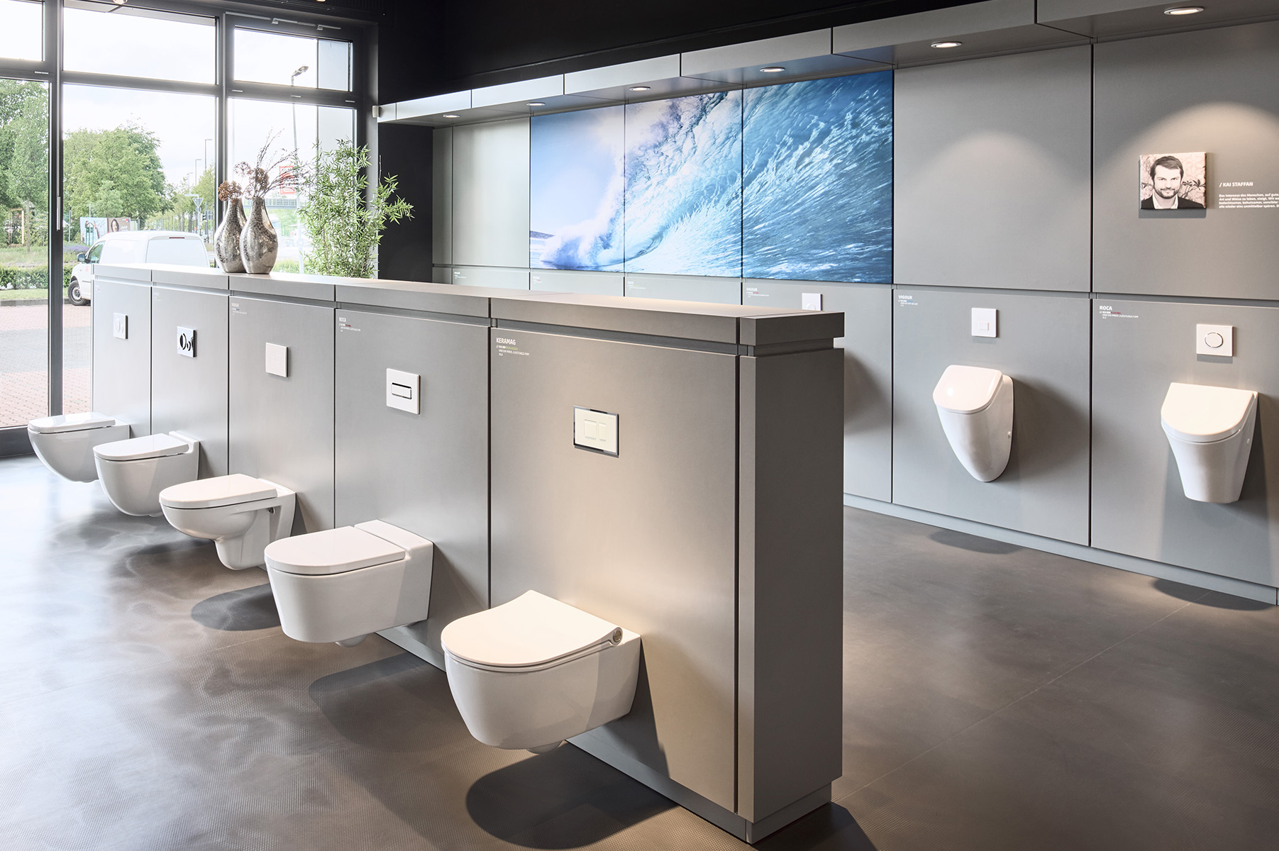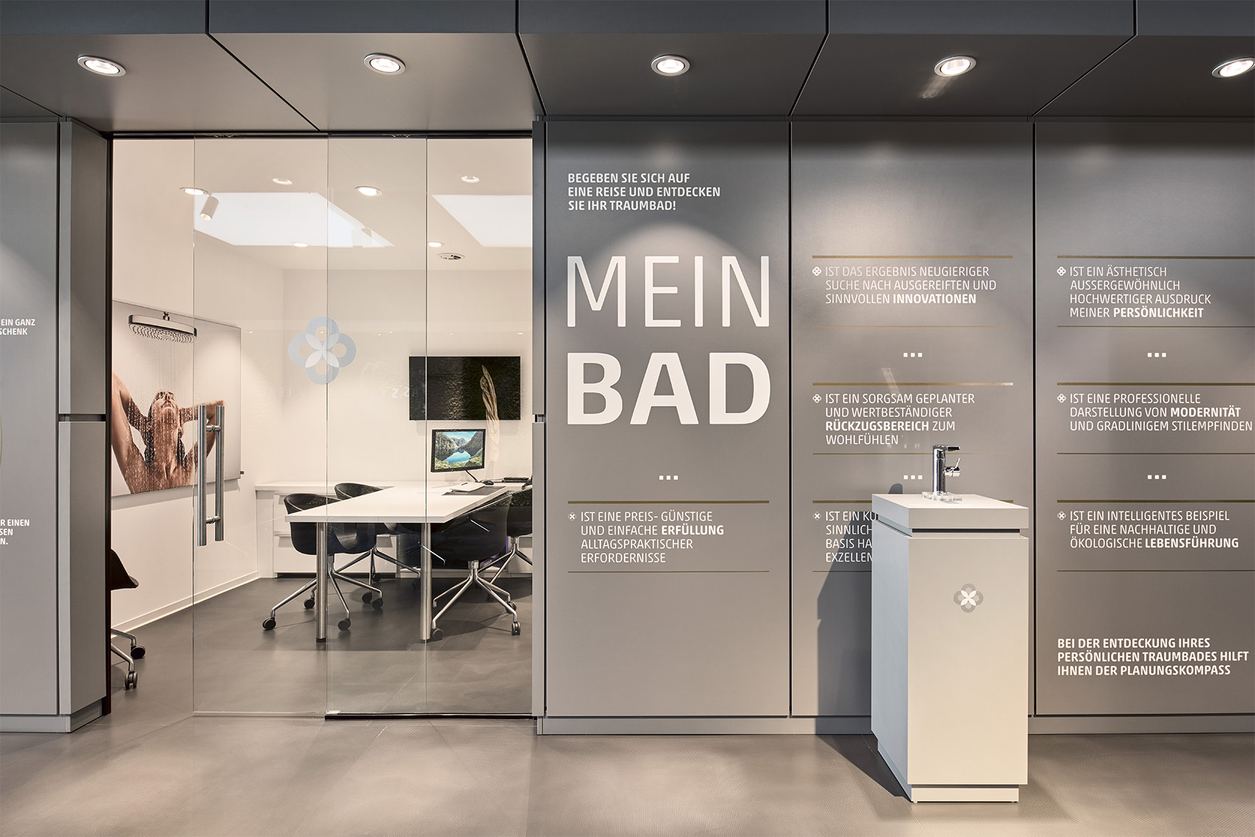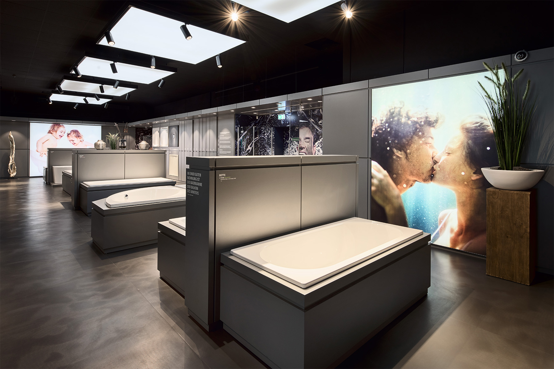 Für das Bädstudio von Elements in Bremen Osterholz entstand ein Ausstellungskonzept mit klarer Präsentation und bewusst verborgenen Details.